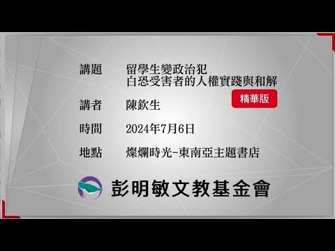 《台灣人民自救運動宣言》六十周年獨立書店沙龍講座:留學生變政治犯,白恐受害者的人權實踐與和解精華版